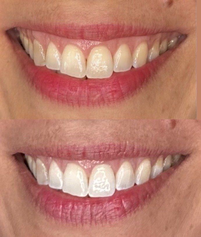 - Previous orthodontic treatments may cause teeth to whiten unevenly if any resin from the treatment is not properly removed from the teeth, either due to residual resin remaining on the teeth or over polishing upon removal.